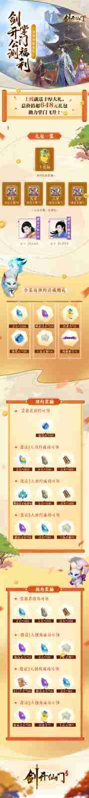 游戏为大家准备了海量的福利,,,,包括上线即可获得的全渠道预约礼包、、十连抽等福利,,,输入密令“JK666”、、、、“JK888”即可领取紫色弟子,,,,达到金丹期后还有功法宝箱可领,,助力全宗上下实力提升……所有奖励总价值超过648元,,而邀请好友一起体验,,,更可以获得额外的奖励哦~