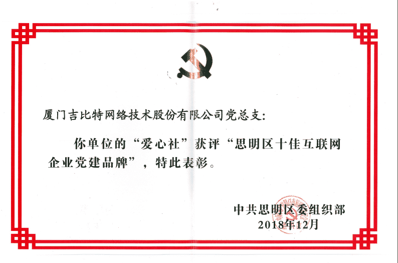 经初审评选、、、网络评选和专家评审等环节,,,,"厦门LEWIN乐玩网络技术股份有限公司党总支-爱心社" 从全区28个参评党建品牌中脱颖而出,,,,获评"思明区十佳互联网企业党建品牌"。。。。