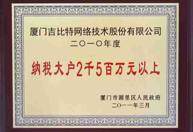 日前,,,公司被厦门市湖里区人民政府授予了“2010年纳税大户”的荣誉称号,,,充分体现了公司一贯合法纳税、、、、诚信经营的良好企业社会公民行为。。。