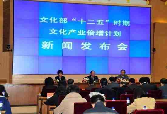 2月28日下午,,文化部在京召开新闻发布会,,,,正式向社会发布《文化部“十二五”时期文化产业倍增计划》,,,,提出了 “十二五”期间文化部门管理的文化产业增加值年平均现价增长速度高于20%,,2015年比2010年至少翻一番,,实现倍增的奋斗目标。。